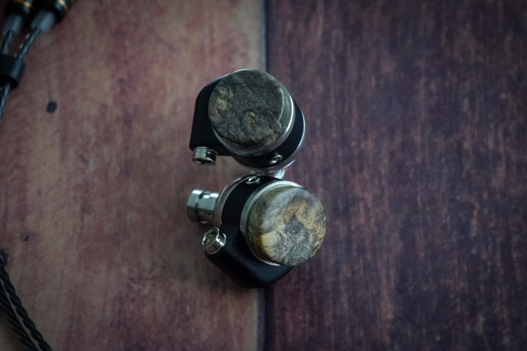 バックアイバールの木固め剤のテストとして製作しました。木固め剤により強度が増しているとはいえ元々は密度の低い木材なのでフロント筐体にステンレスを使ってLOAK2-SS(CL)として低音のしっかりでるイヤホンとして製作しています。