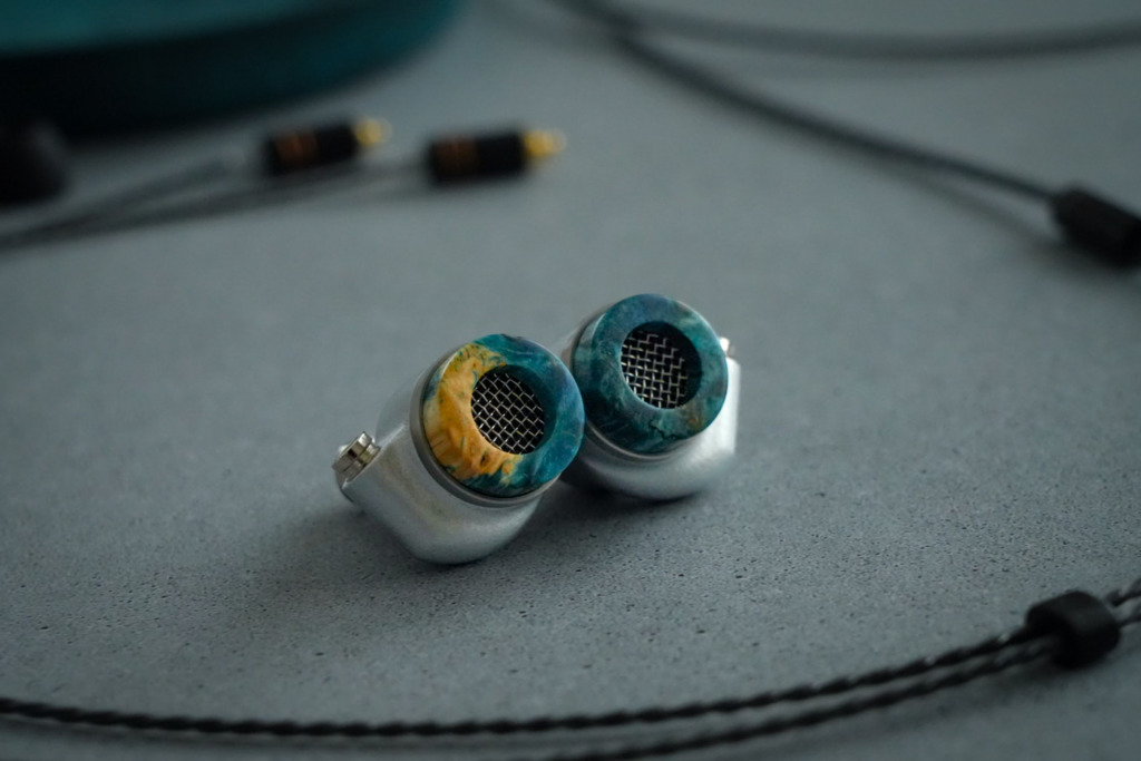LOAK-PROTOTYPE02のリメイク。バックプレートは青と緑が混ざったような色合いのスタビライズドウッドです。